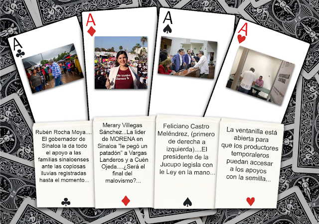 ¡¡¡Sigue enojado Tlaloc!!!......Ante las intensas lluvias registradas en toda la entidad, el Gobernador de Sinaloa, Rubén Rocha Moya y su equipo siguen en alerta máxima para evitar que las inundaciones afecten a más familias tanto en la zona urbana como rural...Sin duda en estos momentos la prioridad es proteger la vida de la población y sus patrimonios y eso lo tienen muy claro las autoridades estatales encabezadas por el ejecutivo estatal que como todo un lider rapido se reunió con las autoridades de Protección Civil, mandos castrenses y civiles para emprender los trabajos de auxilio en las zonas más afectadas....Incluso se optó por suspender las clases en todas las escuelas como medida precautoria....Pero también, el politico morenista en busca del bienestar y la seguridad de todas las personas en esta temporada de lluvias, giró instrucciones al secretario de Gobierno Enrique Inzunza Cázarez para que se trabaje un formato de declaración de emergencia y actuar de inmediato....Y señaló textual....“Estamos trabajando, ya le di instrucciones al secretario, para que me trabajen un formato de declaración de emergencia, ¿Cuándo ocurre eso?, Cuando escapa la capacidad del estado en resolverlo, pero ya hay que hacerlo porque ya se nos está sumando”.....¡¡¡Nooooooombree!!!! si la alerta es permanente ante el riesgo de tener más lluvias en los próximos días....Y dijo...“Vamos a convocar al Consejo de Protección Civil, ya lo revisamos en la mesa de seguridad porque es muy importante, uniformar una serie de criterios y estar informándole a la gente”.....La preocupación es mucha para el que manda en Sinaloa al ver que los pronósticos ponen a Sinaloa en el rumbo de más lluvias y obliga estar preparados....Los daños registrados indican que Ahome huvo 98 viviendas y 47 personas afectadas, El Fuerte 55 viviendas y 24 personas afectadas, Guasave 10 viviendas y 40 personas afectadas, Sinaloa de Leyva 47 viviendas afectadas sin evacuación de personas, Culiacán 70 viviendas y 150 personas afectadas, Elota 11 viviendas y 38 personas afectadas y San Ignacio 15 viviendas afectadas sin evacuación de personas......La buena labor del Secretario General de Gobierno, Enrique Inzunza Cázarez permiten a Rocha Moya tener un dato exacto de lo que ocurre en Sinaloa, pues está en contacto directo con el DIF Estatal, la Sedena, Semar, Protección Civil y las policías municipales y estatales.....En las labores de apoyo, se entregaron despensas alimenticias, colchonetas, abanicos, estufas de mesa y láminas....Y sobre el tema el Gobernador expuso...."El DIF Sinaloa visitará las comunidades afectadas por las lluvias y entregará acorde al daño ocasionado, despensas, colchonetas, abanicos, estufas de mesa y láminas en Guasave, Estación Bamoa, Herculano de la Rocha, en Badiraguato, Los Naranjos, San Javier, en Sinaloa Estado, Comunidad Las Playas, El Coyote, Potretillos, Maquipo, Genaro Estrada, Santa Ana, Ocoroni, Santa Magdalena y Los Melones, en San Ignacio, Estación Dimas y Dimas, en El Fuerte, Ejido Tepic, Palo Verde y Tres Garantías, en Ahome, Ejido Nuevo Sinaloa, El Carrizo, Poblado 5, Bacarehuis y en Culiacán la Colonia Los Mezcales”....¡¡¡Ufff!!!....Un esfuerzo titánico......Entonces vienen las preguntas.....¿Por qué no reconocer el trabajo del Gobernador y su equipo de trabajo en el respaldo al pueblo sinaloense?....¿Acaso los han dejado solos en la emergencia?....Mmmm....Será el sereno, pero hay las autoridades estatales no descansan ni de día ni de noche.....¡¡¡¡Aaaaaaaaahhhhh razaaaaaaa!!!!.....