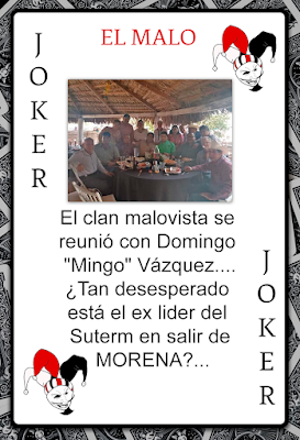 Los joker más malo de lo malo se lo ganaron y si ninguna duda, el ridiculo ex gobernador bailarín, Mario López Valdez y el desleal coordinador de Turismo en la Zona Norte, Domingo "Mingo" Vázquez al reunirse con el clan malovista y prácticamente avalar un destape del peor ex gobernador en la historia de Sinaloa...."Mingo" con este pacto politico traiciona a MORENA, traicione a Rocha Moya, abraza a su dizque enemigo, Gerardo Vargas Landeros y le da el abrazo de Judas a todos los malovistas que pensaron que sería un politico diferente.......¿Qué espera el Gobernador Rocha en cesarlo por traidor?, no sabemos, pero el es evidente que un politico de esta naturaleza no debe estar en un gobierno morenista a menos que tenga la venia del Señor, que no creemos.....Y es que nadie se explica porque apostarle a un "Mingo" Vázquez desgastado, despistado y un politico que piensa que tiene la gente en la bolsa y sera de nuevo protagonista el 2024.......El bailarín piensa que están las mismas condiciones políticas para ganar como el 2010 y está muy pero muy equivocado, se olvida que la gente ya lo aborrece, lo odia y no quiere saber nada a lo que huela políticos quemados, cuestionados y menos donde haya habido juicios a funcionarios involucrados en actos de corrupción....¿A poco es un alma de Dios?......¡¡¡Veremos como lo trata el pueblo si el PRI o MC le dan su venia?.....